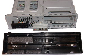 По периметру посадочного места для съемной стенки установлены небольшие металлические скобы, выполняющие функцию виброгасителей. Все легкодоступные края шасси корпуса хорошо обработаны и почти все завальцованы. Места для крепления материнской платы пронумерованы, а сами крепления имеют специальную выпуклую форму. В месте расположения центрального процессора имеется специальная пластиковая вставка, называющаяся Partition Plate Cooling Tech (PPCT), призванная делить пространство на две части для более эффективного охлаждения. Рядом расположен концевой выключатель, информирующий об открытии корпуса.